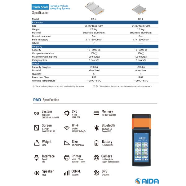 Aida's Mobile Truck Scale model B2, originating from China, is a versatile and reliable weighing solution suitable for a variety of Product Application Occasions and Scenarios.